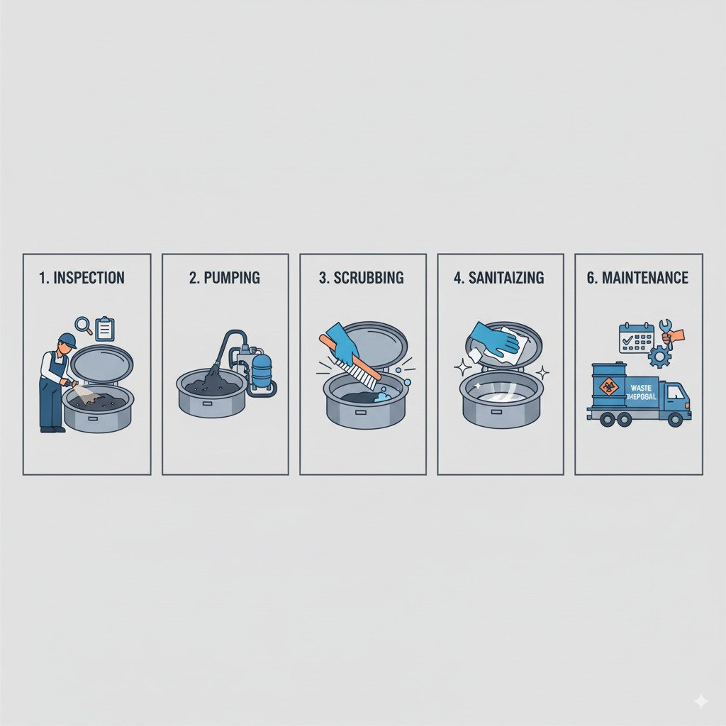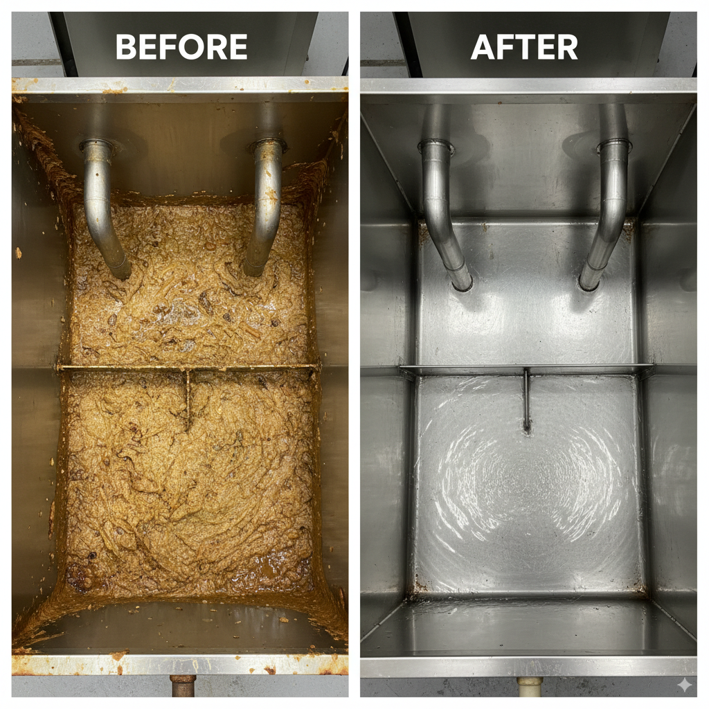 Deep Cleaning – Scrub & sanitize grease pit and tank.